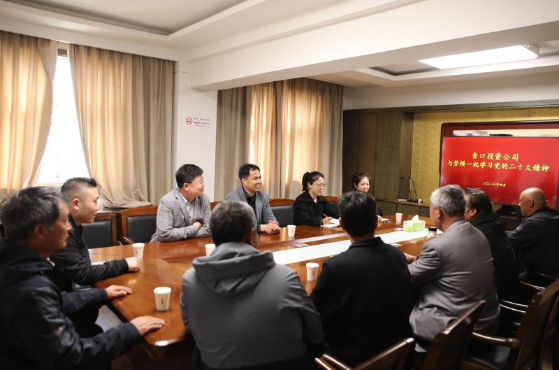4月21日下午,青口投资公司开展“学贯二十大 汇聚新思想”劳模先进座谈会系列活动。公司党委书记、董事长、总经理史祥平,党委副书记、工会主席梁永,纪委书记朱文兵以及部分劳模、先进代表参加。
