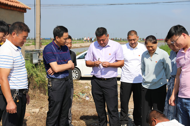 现场观摩环节,全体与会人员先后来到三洋支部党员养殖示范岗、大新支部有机稻党员示范岗,了解两个“示范岗”的创建特色并听取了宋海龙、俞正猛在各自岗位上的养殖、种植经验。