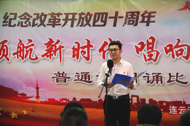 为了纪念改革开放四十周年,引导和激励广大职工围绕 “高质发展、后发先至”主题主线,为建设“强富美高”新青口、开启青口发展新征程贡献力量。12月11日下午,青口公司党委隆重举行“领航新时代 唱响青口梦”纪念改革开放40周年普通话朗诵比赛。活动邀请到连云港市语委办副主任、诗朗诵艺术家协会副主席朱卫文,国家级普通话测试员、市朗诵艺术家协会副秘书长李蕾、主任播音员、市朗诵艺术家协会副主席朱平担任评委。公司领导班子 及 全体管理人员参加活动