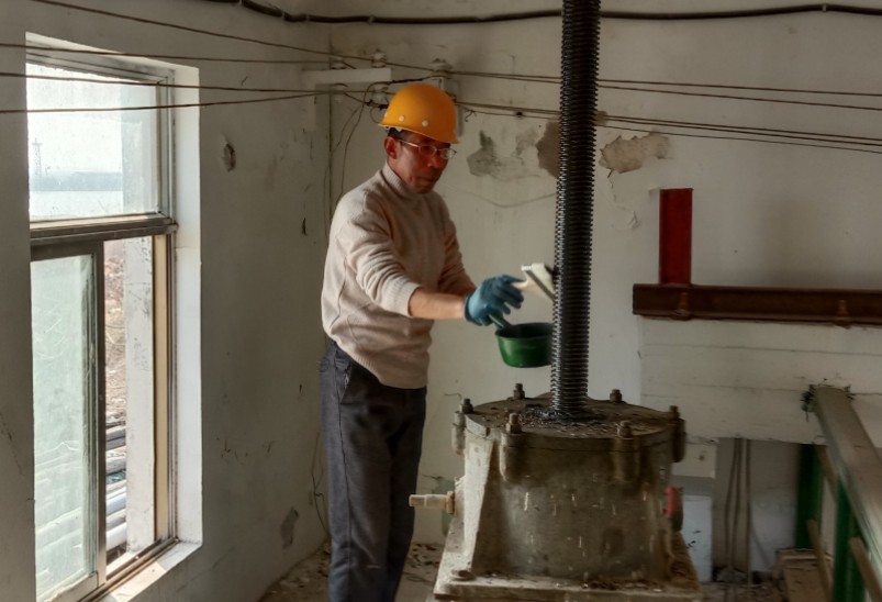 为保障汛期设备正常运转,做到未雨绸缪,近日,生产生活服务中心组织扬水站班组开展汛前机器维养工作。重点对启闭机各个部分进行维护,对钢丝绳、滚筒、齿轮等重要部件进行除锈、涂油,达到保护润滑机械设备作用,确保机械设备良好运行,为安全迎汛、度汛做好充分准备。(田盛楠)