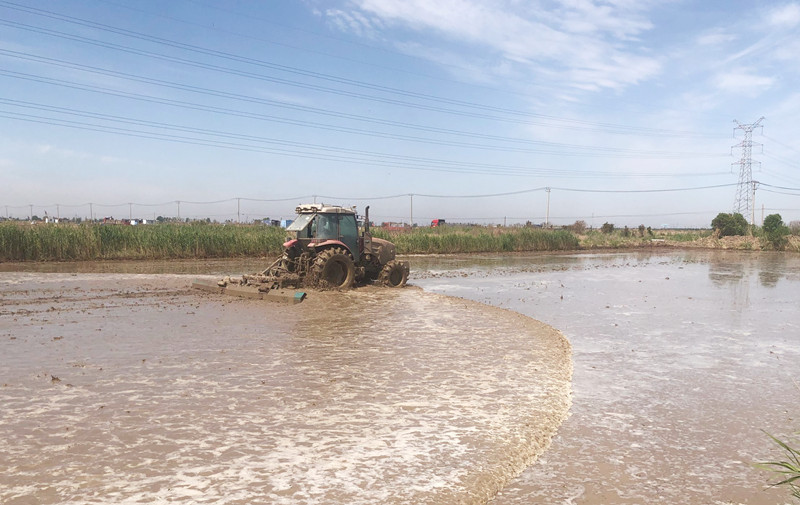 近日,仓储中心抢抓农时节点,积极推动50亩水稻地水找平作业,为下一步插秧工作做好准备。(房江彬)