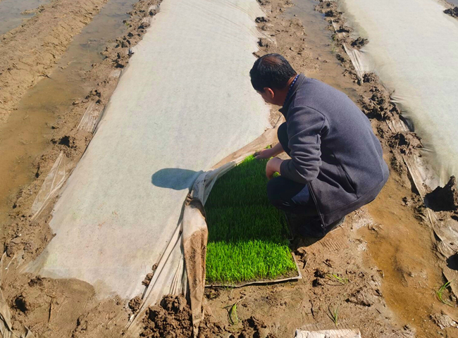 近期,大新农场组织对自营农田机插秧集中检查,目前秧苗生长正常已达到1.5-2叶秧龄。由于天气良好温度持续上升,预计5月下旬即可揭开无纺布进行秧苗管理,6月上旬开始插秧。(刘 杨)
