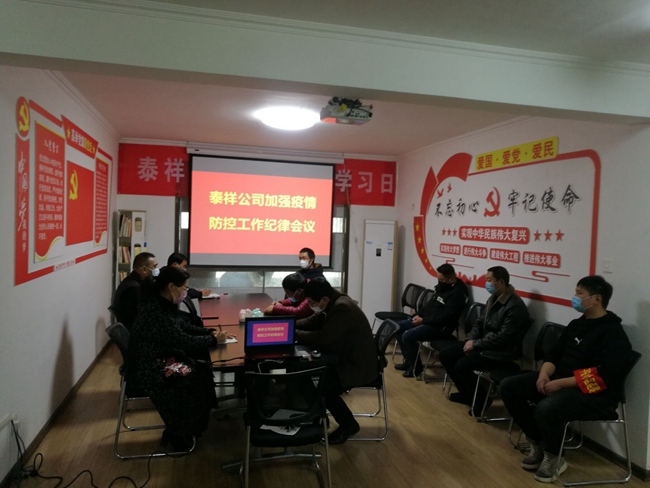 自新型冠状病毒感染的肺炎疫情发生以来,泰祥公司坚持把疫情防控工作作为当前最重要的任务来抓,进一步织密疫情防控网,保持对疫情的警惕性不降低,防控要求不降低,全力为疫情防控工作提供纪律保障。