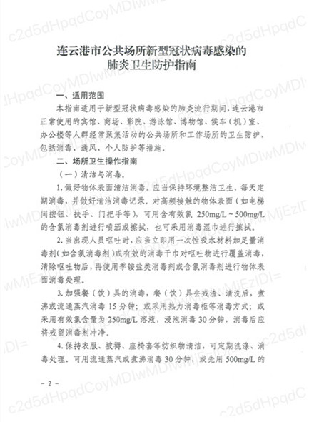【防护指南】连云港市公共场所新型冠状病毒感染的肺炎卫生防护指南