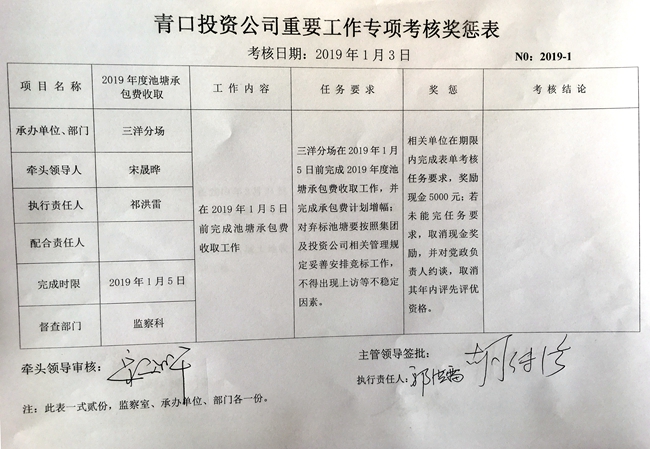 【表单考核】青口投资公司重要工作专项考核奖惩表