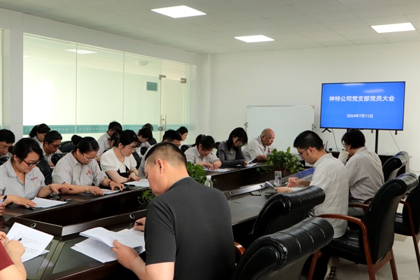7月11日上午,神特公司党支部召开党员大会,公司全体党员参加会议,讨论和表决王勇等8名预备党员转正事项。会议由公司党支部书记严成主持。