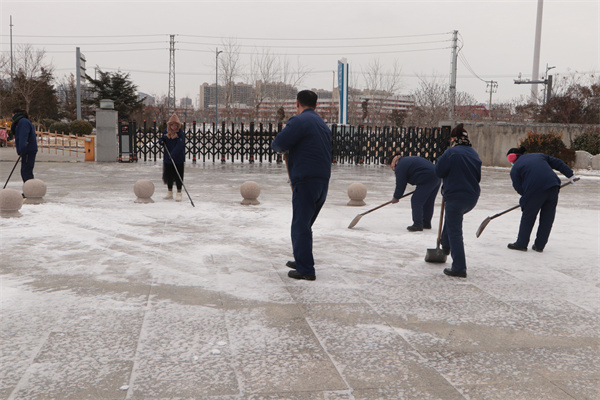 在扫雪除冰的过程中,志愿者们充分发挥党员先锋模范作用,不畏寒冷,积极清理道路上覆盖的积雪。在大家的共同努力下,积雪快速清除到位,有效保证了职工的正常通行。(神特宣)