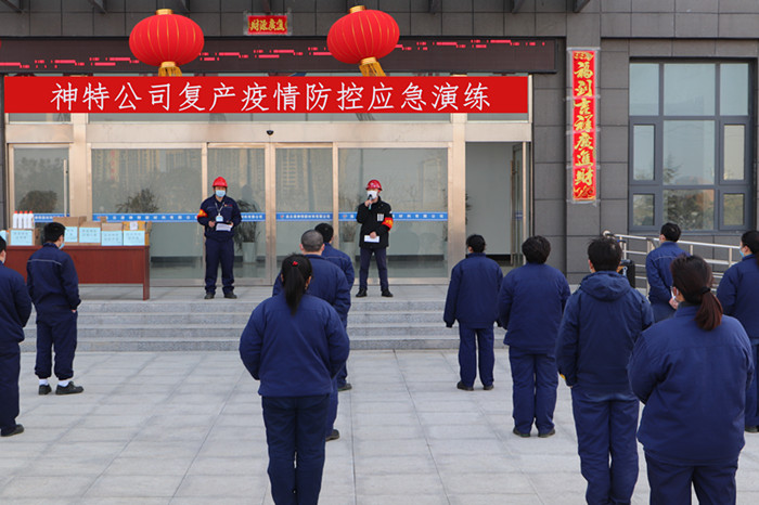 2月26日,神特公司开展复产疫情防控应急演练,进一步检验疫情防控成效,提升突发卫生事件响应和应急处置能力。公司疫情防控领导小组全体成员,疫情应急组、后勤保障组、医疗救护组各工作组成员,以及生产一线、机关后勤复产员工50余人参加了演练活动。