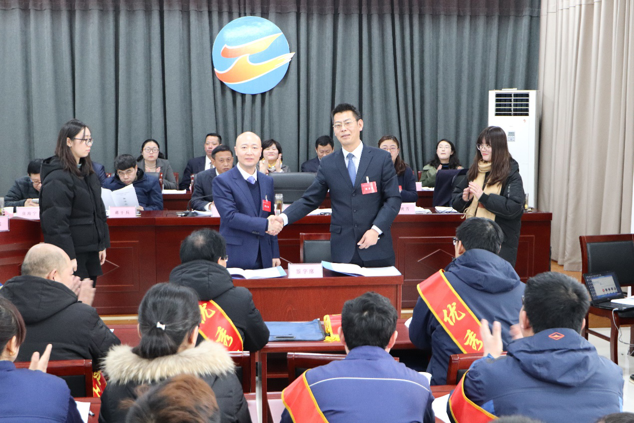 会议选举产生了新一届工会委员会、工会经费审查委员会、女职工委员会及职代会三个专门委员会。与会人员听取并审议了总经理《工作报告》、工会《工作报告》及《2018年预算指标完成情况及2019年预算安排的意见》、《2019年劳动竞赛实施意见》等有关方案。会上,签订了《2019年度集体合同》,并对2018年度3个先进部室、3个示范班组及15名优秀员工进行了表彰。