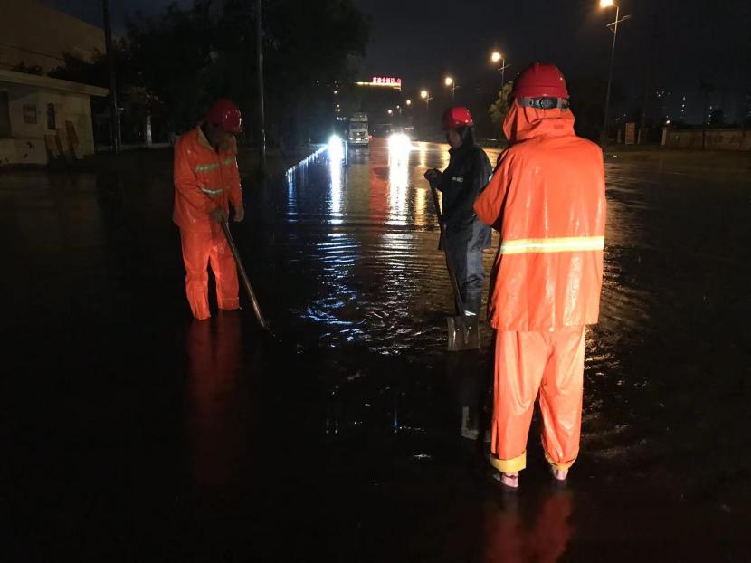 公司迅速启动防汛应急预案,各分公司积极组织力量对道路、桥梁、涵闸、养护绿化带、苗圃基地、出租厂房、盐田结晶区等重点部位进行全面细致的排查,及时清理管道杂物,确保排水畅通,并对各电气设备进行详细检查和维护,防止发生短路等安全事故。各分会组织力量对职工群众值班房、自建房等进行全面排查,确保安全无事故。