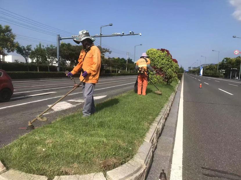 保障园区“塑新颜”。节日期间,开发区辖区的主干道上、公园、广场、支路等公共绿地,随处可见台北(华茂)绿化养护人员坚守一线的忙碌身影,他们放弃与家人团聚,重点对玉竹路、佟圩路、银台路、242 省道等路段绿篱、模纹、草坪进行整形修剪,对碱厂南路等路段绿化带内低矮乔灌木进行打药治虫,对展览中心、黄海大道等辖区内及时清理绿化带杂草、捡拾草根、干枝等绿化垃圾,保持绿化带干净整洁美观。益丰园林分公司绿化班全员放弃节日休假,外拓市场,与绿化分公司联动赴徐圩消防大队院内开展突击修剪行动,他们不怕脏、不怕累,共修剪灌木球50余棵,灌木丛7000余平方米。