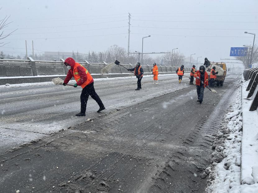 自2月2日以来,裕升养护分公司接到扫雪除冰紧急通知后积极响应,迅速调配人员和物资,等待暴雪降临。在负责人霍正钢的带领下,公司第一时间成立应急抢险队,这是一支由12名队员,平均年龄在57岁所组成的队伍,更是一支“特别能吃苦、特别能奉献、特别能担当”的队伍。雪花于晚次日11点飘然而至,霍正钢密切关注雪量以及积雪状况,并做好指挥部署,同时通知各队员立即开展道路扫雪除冰工作。