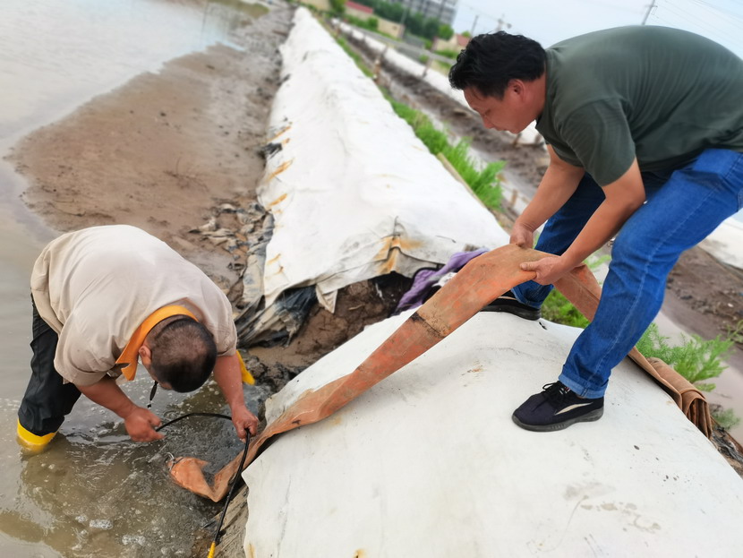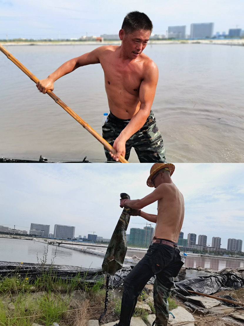 先锋泵站,程辉师傅撩起工作服擦了擦脸上的汗水,继续将潜水泵安置到已废弃的滩地里,把滩地里的雨水抽干,将废弃的滩地利用起来晾晒低浓度的钙液,解决销售旺季成品钙液供不应求难题。