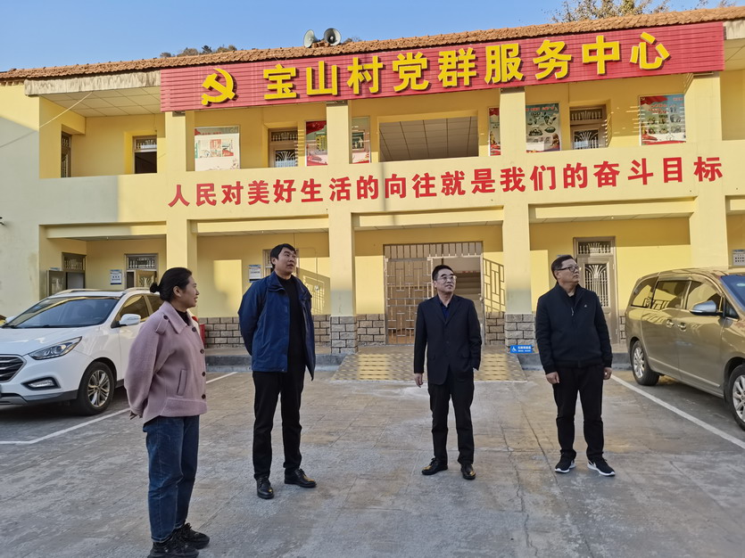 ▲宝山村党支部负责同志介绍文明创建情况