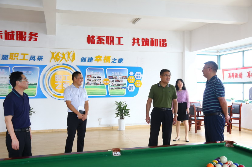 9月2日leyu(中国)公司工会来台北公司开展工会工作专题调研。leyu(中国)领导刘承志带队,调研组一行首先来到临达公司,参观职工建家工作开展情况。刘主席对职工文体活动、文体设施、困难帮扶等一一询问,并对今后发展作出指导。
