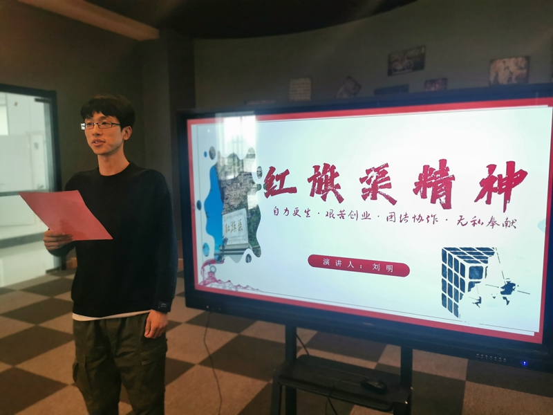 一场演讲比赛——“自力更生、艰苦创业、团结协作、无私奉献”,青年职工走上讲台,述说着勤劳勇敢的30万林州人民,苦战10个春秋,仅仅靠着一锤,一铲,两只手,在太行山悬崖峭壁上修成了这全长1500公里的红旗渠的奋斗故事。