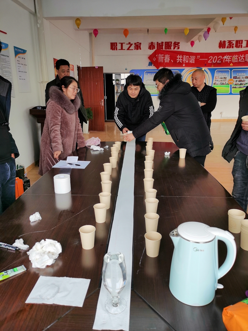 临达公司工会组织开展了“迎新春、共和谐”职工联谊会。本次活动以“益智娱乐、休闲健康”为主旨,设置群龙夺水、你比我猜、卷纸大作战、绕口令等四个游戏项目。现场用气球、横幅等布置,洋溢着浓浓的节日氛围。