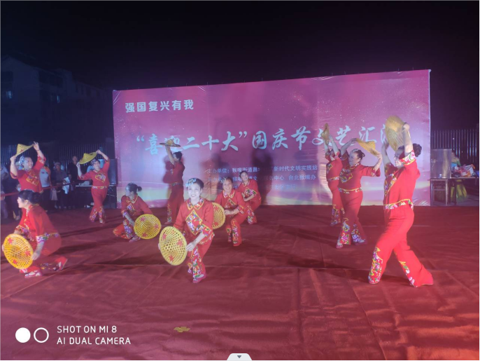为迎接党的二十大胜利召开,以良好的精神风貌向祖国73周年献礼,丰富台北盐场小区党员群众精神文化生活,营造欢乐的节日氛围。9月30日晚,由猴嘴街道昌圩社区新时代文明实践站主办,台北猴嘴办事处承办的“喜迎二十大”为主题的国庆节文艺汇演在猴嘴昌圩小区精彩开演,吸引了众多盐场党员群众参与及观看。