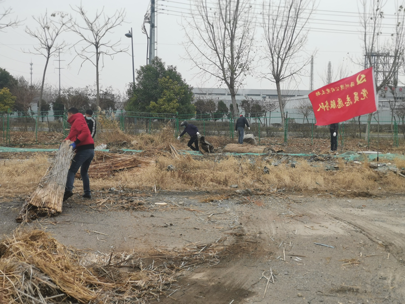 活动现场,鲜红的党旗迎风飘扬,支部党员、职工手拿铁锨、镰刀、扫帚等工具,对场地上的垃圾、杂物进行了清理。特别是经过风吹日晒的生活垃圾,散发出阵阵酸臭味。突击队员们分工协作,不怕脏,不怕累,干劲十足,经过三个多小时的辛勤劳动,场地环境有了很大的改善。