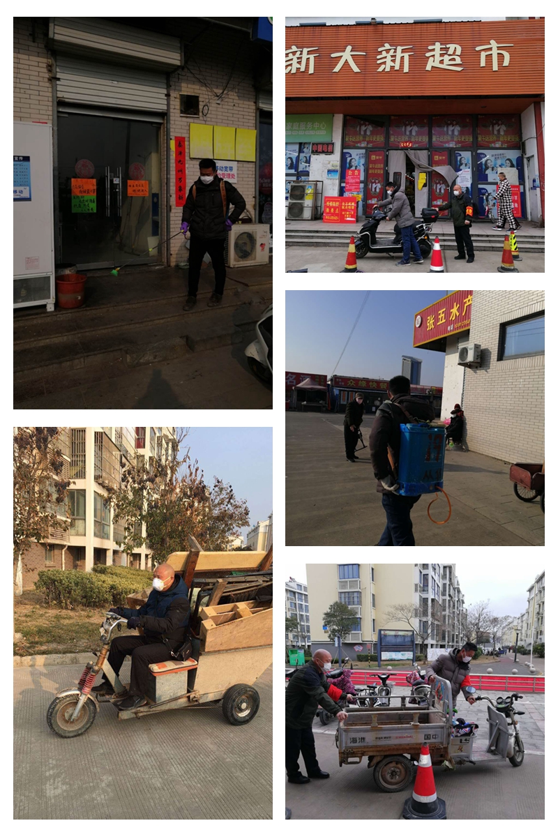 年初三开始,和值班领导站在邻里中心入口处时刻提醒业主外出戴口罩,做了很多“不近人情”的事,常常不被理解,甚至于还要受人责骂。对于这些他从不埋怨,本着初心只为从源头上遏制疫情把好关。小区内全面实施严格消毒管理措施,韩加柱、卢廷高二人主动承担了邻里中心的消毒水喷洒工作。楼道里、垃圾桶旁,不放过任何死角。没有N95口罩,来不及经专业的知识培训。近日来共计喷药消毒近万多平方,节日期间清扫垃圾,消毒垃圾桶他们用默默的行动为广大业主筑起一道坚固的生命防线。