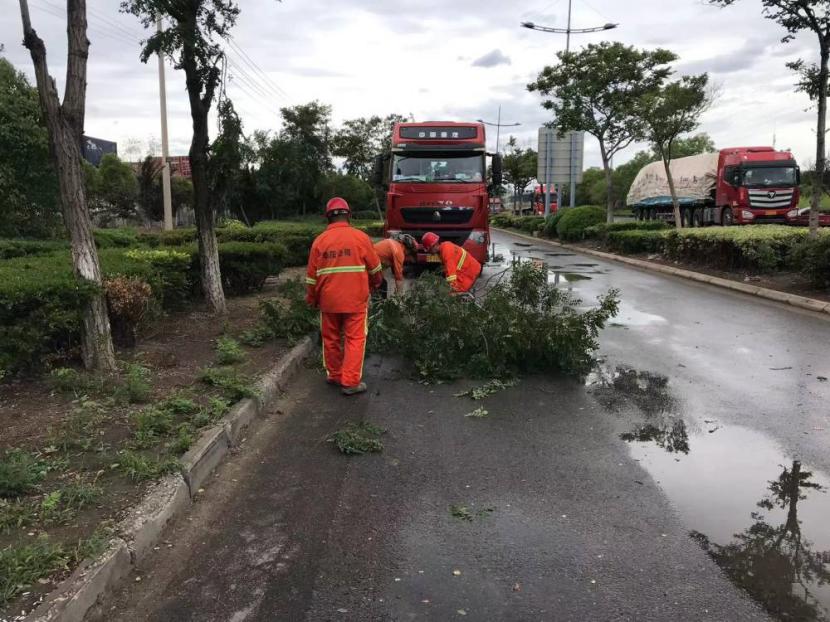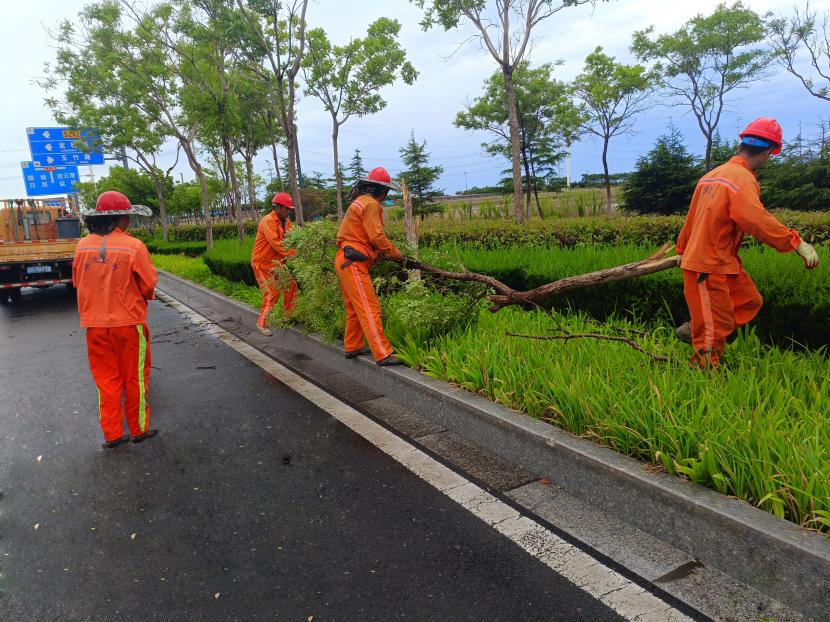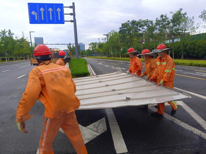 天蒙蒙亮,盛达市政道路维修班组人员便到岗,对辖区内道路、排水设施进行全面检查,及时将断枝的树木,吹飞的广告牌,吹翻的企业围挡等进行清理,及时疏通被树叶、淤泥、垃圾堵塞的雨水井盖,巡查发现有破损井盖的立即上报并迅速修复,同时在危险地段设置警戒线、锥形桶,全力保障行人和车辆的通行安全。