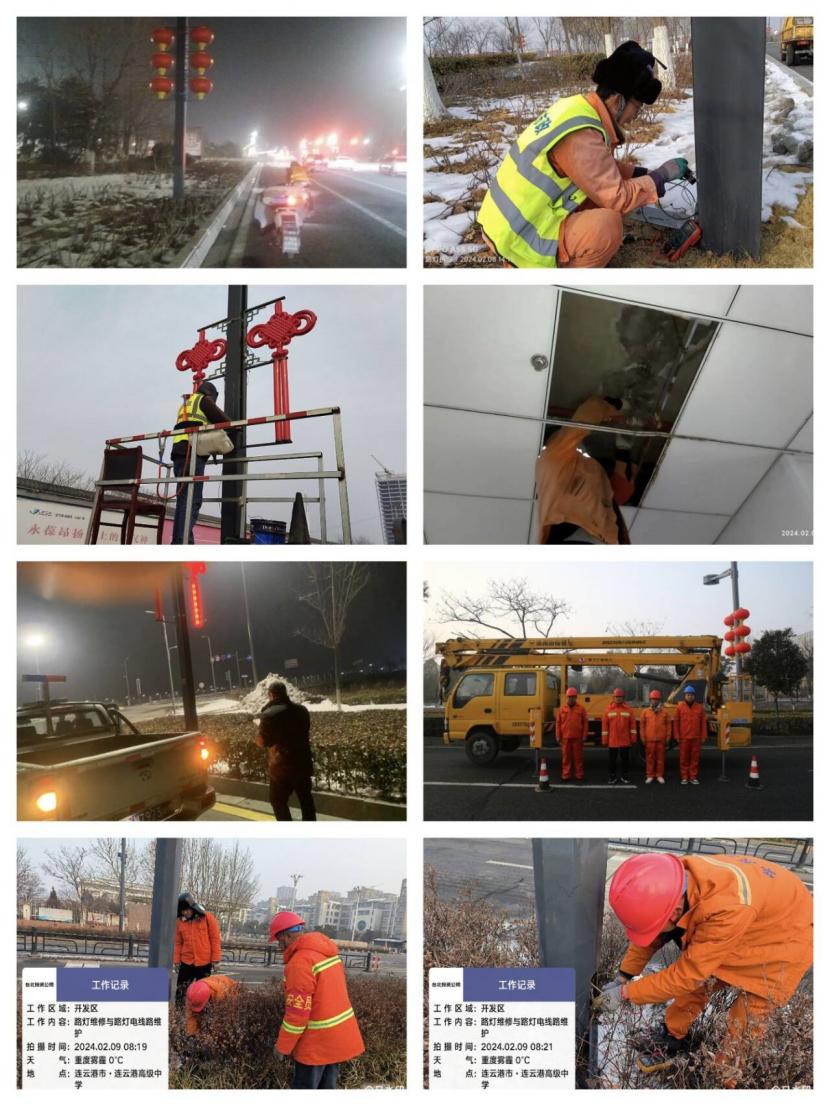 眼下正是农历新春佳节家家团聚的好日子。在翔立分公司,有那么一群人依然坚守岗位,全年无休的服务于市民的出行和过节,默默的奉献着自己照亮别人,他们就是路灯班组的路灯保障职工和红灯笼、中国结等亮化景观的维护工们。在节日的喜庆氛围里,他们依然和平时一样,每天晚上天黑时分准时准点来来到花果山大道、黄海大道等主干道路边,一盏又一盏一丝不苟的检查着路灯杆上的中国结和红灯笼,发现有不亮的立即记录在笔上本上做好标记,及时检查是线路问题还是灯具的问题认真的加以维修,及时排除各类大小亮化故障,保障节日期间亮化灯具的正常运转。该公司路灯班组全年365天无休,每天晚上检查各条道路的路线,白天及时维修,他们用点亮自己照亮别人的路灯精神服务于开发区居民一年四季的平安出行,开辟了一条又一条“金光大道”,获得了社会各界的交口称赞。