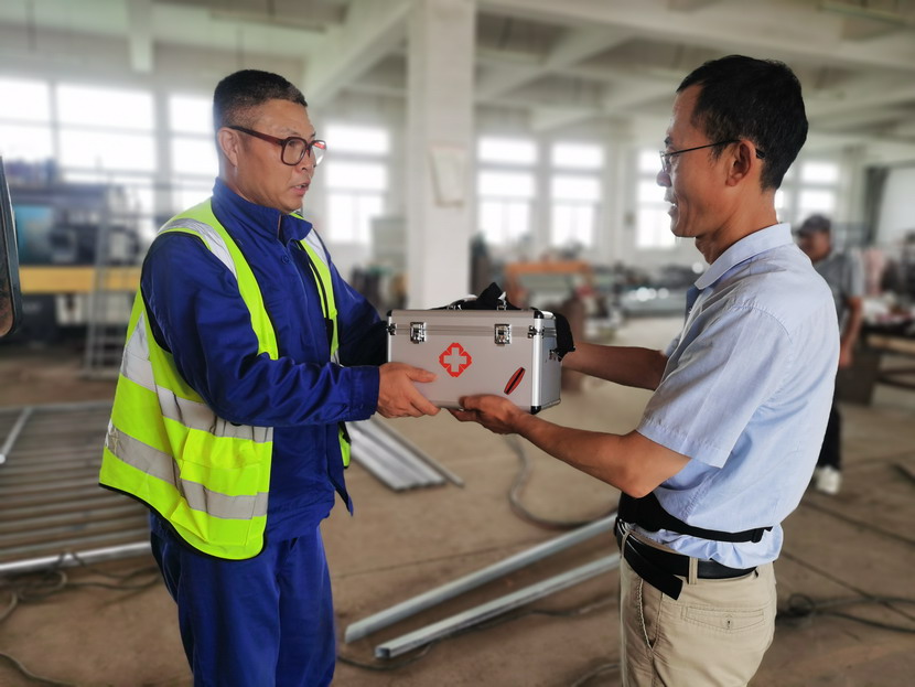 注重施工现场安全管理,规范电信、市政、绿化工程施工管理规范,班组安全生产实行“一班三检”制,各班组进场前《安全交底》已经形成常态化。为防患于未然,提高作业班组应急反应能力,翔立分公司购置一批急诊箱并配齐防暑和急救药品,送健康送安全防护进班组。