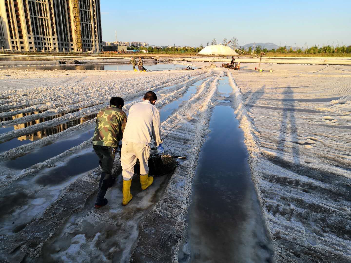 工区加大结晶工艺调整力度,塑苫布及盖及收,不放过1毫米蒸发量,真正做到“云彩缝里夺盐斤”。对走完盐的廪基进行泡制,充分挖掘制卤潜力,抓好穷制卤。严把结晶灌池关、卤水进池关、塑池管理关、结晶环境关,抢天时、抓制卤、促工艺、结合实际加深水工,强制饱和卤水。针对14、15班已征用滩地,在机械扒盐后又用人工进行二次扒盐,将塑池内的盐斤彻底收回,真正做到颗粒归仓,为完成原盐生产计划尽心、尽力。