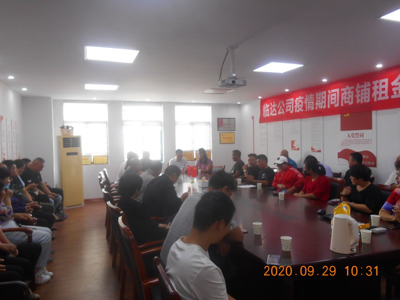 临达公司党支部坚决和党中央保持一致,坚决拥护党中央的决定,认真学习了省、市以及leyu(中国)公司等减免疫情期间房租的相关文件精神,仔细研究、反复讨论,经上报台北投资公司、leyu(中国)公司两级党委批准,9月29日下午,减免光伸建材市场、德兰建材市场、金三角市场、原公司院内仓库、院外大棚、猴嘴山洞共48家商户3个月租金,计52万余元,减免金额达全年租金收入四分之一。
