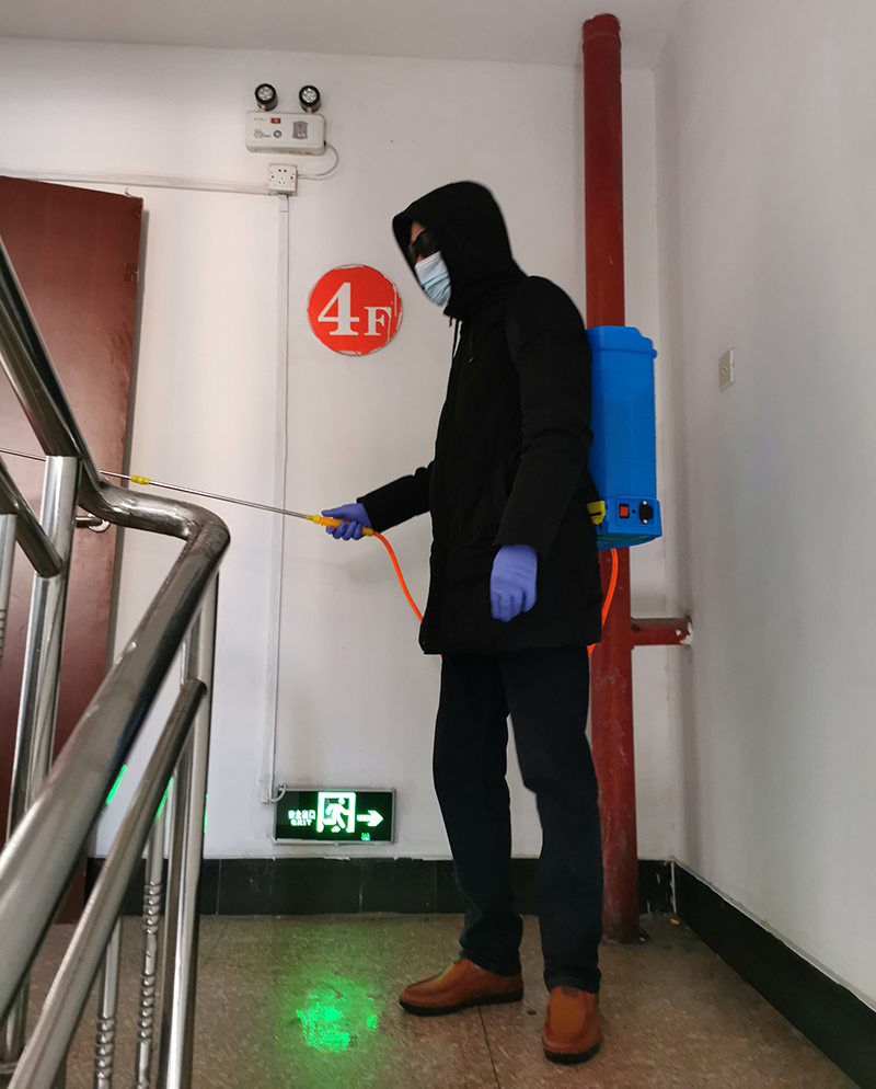 义务消毒,没有报酬,得随时待命,看起来是应者寥寥的苦差。在昌圩湖职工小区和公司机关大楼,却穿梭着这样的身影。他们背着装满消毒液的喷壶,穿梭在社区街道和办公场所,把消毒液喷洒到的每一处。