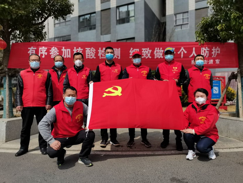 开发区猴咀片区昌圩湖社区是港城最大的小区之一,常年居住人口达万人,面对疫情社区压力大、任务重。公司疫情防控(昌圩社区)临时党支部组织居住在社区的投资公司员工参与疫情防控,所有党员和积极分子闻疫而动,逆行而上,不顾个人安危,第一时间参与到社区的志愿者行列中,积极参加社区的各项抗疫工作,大家服从管理,听从安排,重活累活抢着干,社区消杀、巡查、上门登记、维稳、核酸检测,到处都有他们的身影,现已成为社区疫情防控的主力军。关键时刻能豁得出、顶得上,用自己的实际行动践行使命,用一颗对党忠诚的心,全力守护人民群众的生命和健康,真正做到:“一名党员就是一面旗帜,一个支部就是一座堡垒。”