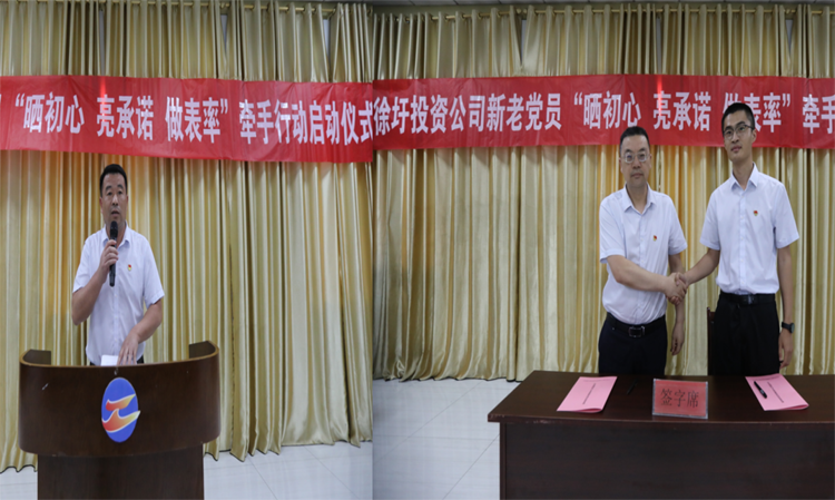 6月29日,投资公司举行新老党员“晒初心•亮承诺”牵手行动。投资公司党委副书记、工会主席刘刚,各支部新老党员代表及党务工作人员代表参加会活动。