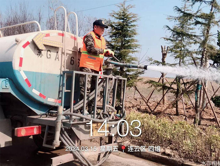 加大春灌施肥力度。及时浇灌返青水,有效增加地温、保护根部,增强苗木萌芽能力。综合近期天气、土壤、苗木种类等因素,瑞南分公司绿化班组按照“细洒慢浇、浇足浇透”的原则,控制浇水时间,提高浇水效率,加速植被返青。开展对乔灌木、黄杨,红叶石楠等园区植物进行全面施肥工作,肥料主要以有机肥、尿素、复合肥为主,通过人工浇水使肥料融化渗入土壤,园林植物可以充分摄取养分,增强生长态势,特别是对长势弱、生长不良苗木进行重点施肥,确保园区植物生长良好。(杨雨堃)
