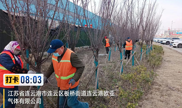 实时拆除防寒设施。随着气温的逐渐升高,为使苗木更好、更快的返青,前期瑞南二个绿化班组紧锣密鼓,积极准备,抢抓时机,3月中旬对云港路、金港路、228等道路两侧夹竹桃等绿植防寒草帘进行拆除工作,并对去冬枯枝干叶安排修剪。