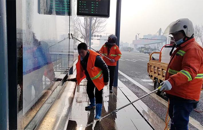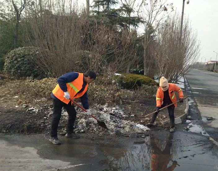 道路清扫“有龙声”。为了保持假日期间园区路面干净整洁,瑞南保洁班组加班加点,对重点路段加大保洁力度。早上六点,园区主次干道身穿橘色工作服保洁卫士,拿着清扫工具,对道路死角进行细节清扫,为出行市民营造整洁靓丽的园区环境。保洁分公司小分队50余名保洁值守工作人员如往常一样来回不停穿梭于徐新路、上海路等园区道路沿线两侧。兵分8路进行作战,弯腰捡拾路边各类垃圾、清洗站台20余个、清倒各类果皮箱200余个、清理人行道上雪块50余处,清理战线约1500余米长。