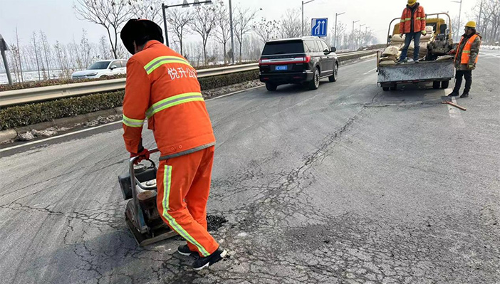 市政维护“有龙威”。大年初二,市政值班人员在日常巡视中发现港前大道至苏海路段出现3处道路坑塘,造成极大的道路交通安全隐患。值守工作人员第一时间带好沥青冷补料,切割机和平板振动夯等工具第一时间到岗到位。摆好安全警示锥、路面切割、补料、修复……大家齐动手,配合和谐,连续作战2个多小时,高质高效将道路坑塘修补到位,确保春节期间道路交通安全。