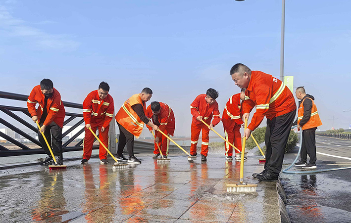 10月18日上午,悦升公司机关管理人员深入一线对海滨大道南卡口至疏港大道路段及桥梁路缘石进行强化清洗,用实干打好赛道保障“战役”。工作现场,一台高压冲洗车先行对赛道路缘石和桥梁辅道进行高压冲洗,随后,工作人员一字排开,用毛刷不断擦洗地面顽固脏污,大家斗志昂扬、步步推进,做到冲洗无漏洗、无死角,最后再用洒水车清洗一遍。经过近三小时清洗,高标准完成路源石和桥梁辅道保洁清洗工作,有效提高了赛道洁净度。截至目前,已完成该路段2000多米路缘石清洗工作。
