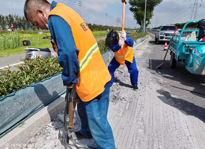 “哪里有急、难、险、重问题,就有党员的身影”。8月4日7时许,石化一班班长巡查中发现,石化园区主干道临海公路与石化七道交接处,发现两处近200多米长的混凝土水泥抛洒物,如不及时处理,易造成路面行车安全交通隐患。薛明柱迅速召集队员到达现场,大家无惧灼热阳光暴晒,三人一组,两人一对,不停按动手中电锤,挥动手中铁锤,反复撬动紧贴地面混凝土,豆粒大的汗珠从脸颊两旁滚滚流下,尽管有的同志手磨出了血泡,但仍然坚守岗位。经过近4个多小时的努力奋战,转运打包固体水泥块达200多袋,整洁柏油路面再次还原本色。(杨波)