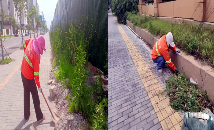 道路保洁“无所畏惧”。 黑色柏油马路上,热浪滚滚,橙色工作服在强烈阳光照耀下显得格外引人注目。女子班,228班组保洁人员在班长龚飞、姚功带领下,肩背除草机,双手紧握长长的操作手柄,高速旋转的打草带,将杂乱草叶打断、甩开,不一会,就“收割”上海路生活区周边杂草20多处;人工清扫装运施工车辆抛洒石子、泥土30余车,擦洗站台座椅30多个,清掏果皮箱200余只,尽心尽职完成突击保洁任务。
